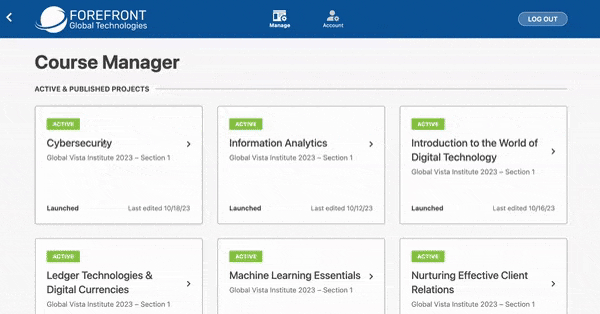 - From your portal, click the Course Manager icon in the top right-hand corner.