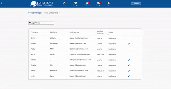 Click Manage Users in the drop-down menu. The learner's status will be listed to the right of their role assignment.